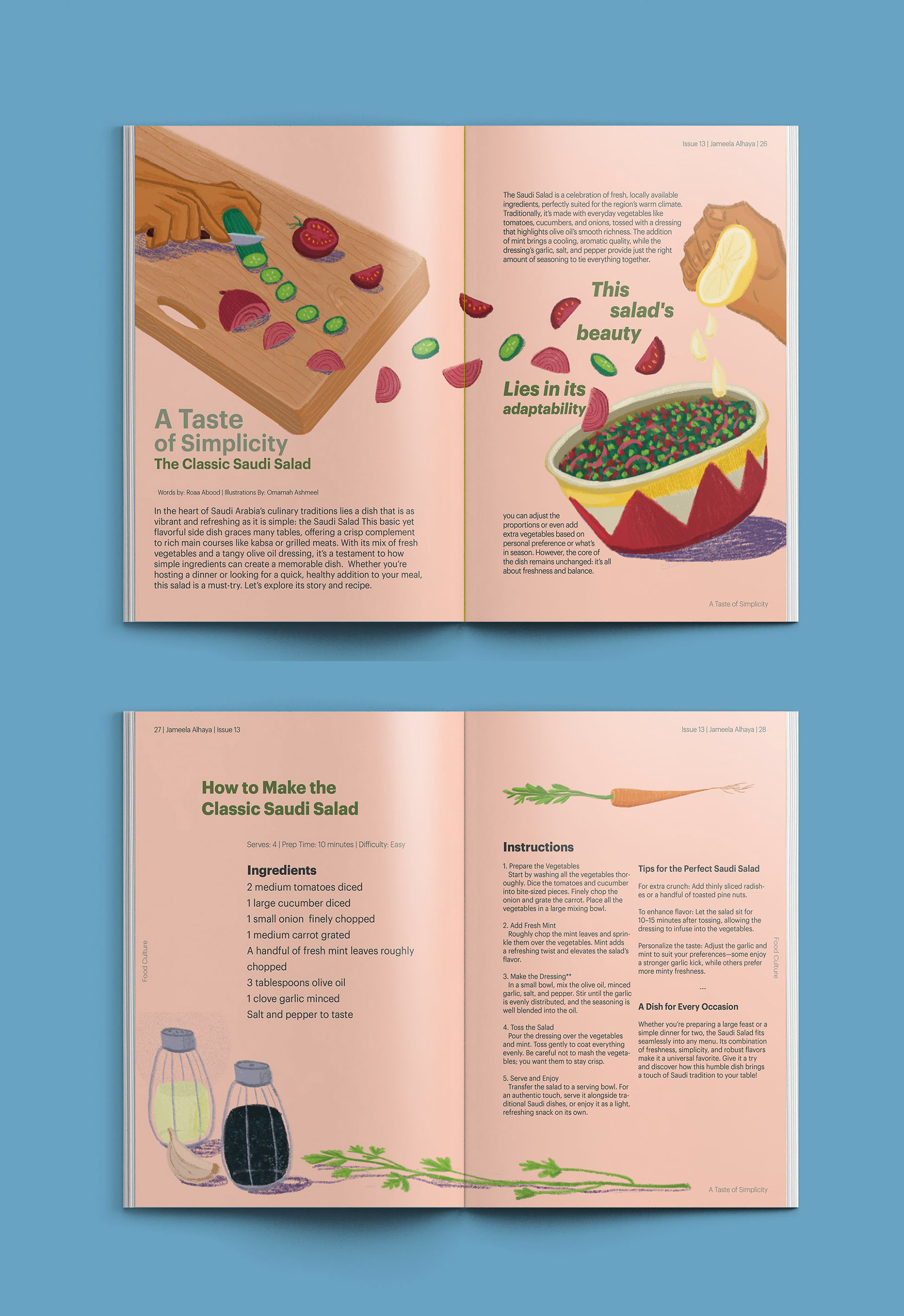 Editorial Illustrations for recipe article about The Classic Saudi Salad.